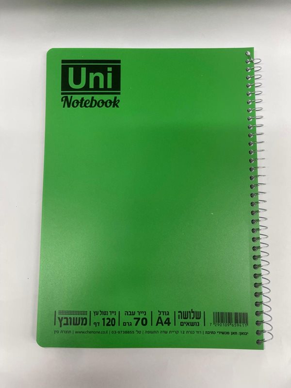 מחברת שלושה נ13ושאים גודל A4 משובץ